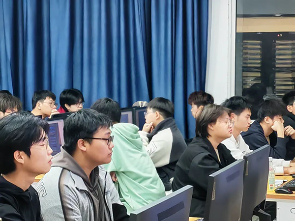 随后,刘修阳老师为学生们讲授了首堂专业课程。他结合生动的工程案例和实践操作,以深入浅出的方式阐述了网络技术的理论基础及其在实践中的应用。学生们全神贯注地聆听,不仅积极投入课程学习并与老师进行互动,还共同参与了实践操作和模拟演练。