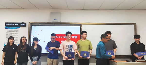 广州商学院现代现代信息产业学院教研室主任周云峰为工作室成员颁发了聘书,赋予他们正式身份。这一重要时刻标志着“AI+CT”讯方工作室的正式启航。