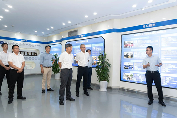 来访领导首先参观了讯方技术展厅,对讯方技术的发展历程、业务模块、经营理念、合作成果等内容进行深入了解,对讯方技术构建人才培养“三循环”生态模式、深度参与高校课程改革、引入职业认证等举措表示赞同。