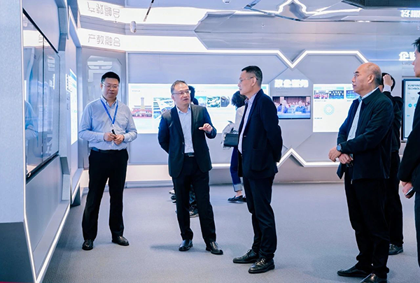 来访领导首先参观了公司展厅,对讯方技术的发展历程、业务模块、经营理念、合作成果等内容进行深入了解,对讯方技术构建人才培养“三循环”生态模式、深度参与高校课程改革、引入职业认证等举措表示赞同。