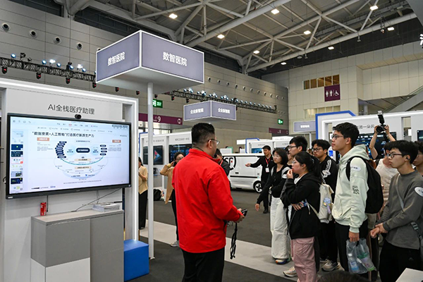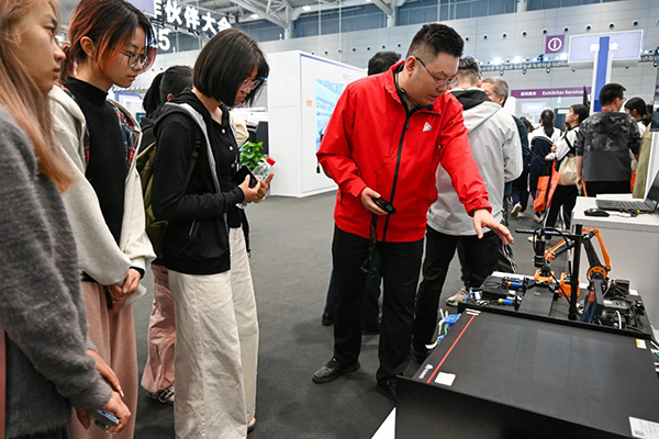 在自由参观环节同学们穿梭于3万平米智能展厅,通过AI数字人导览、工业机器人编程沙盘等沉浸式互动装置,零距离对话能科科技AI+工业场景、东软医疗大模型解决方案4等战略伙伴展区,通过沉浸式互动体验不仅深化了理论认知,而且收获定制伴手礼及惊喜奖项。