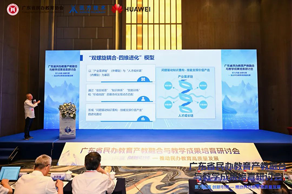 广东省民办教育协会常务副会长张耀荣在开幕致辞中表示,他希望民办学校进一步落实《粤港澳大湾区发展规划纲要》和《教育强国建设规划纲要》,加强与华为和讯方公司的合作,共同打造产教融合的职业教育体系,构建人才培养、科学研究和技术转移为一体的产教融合科教融汇的“湾区样本”。其他多位行业专家、院校学者围绕新时代背景下的产教融合创新实践及成果进行内容丰富翔实的报告,为民办教育高质量发展提供了丰富的理论视角和实践经验。