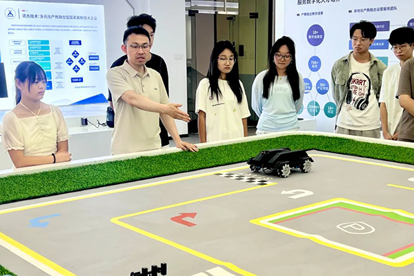 智能家居展厅参观结束后,学生们来到自动驾驶展区。搭载华为昇腾AI芯片的自动驾驶车辆通过多传感器融合与智能硬件系统,依托AI算法可精准感知周围环境。车辆无需人为操控,就能平稳地在模拟道路中行驶,引发学生赞叹,认为该技术可提升通行效率,降低事故概率,重塑未来出行格局。