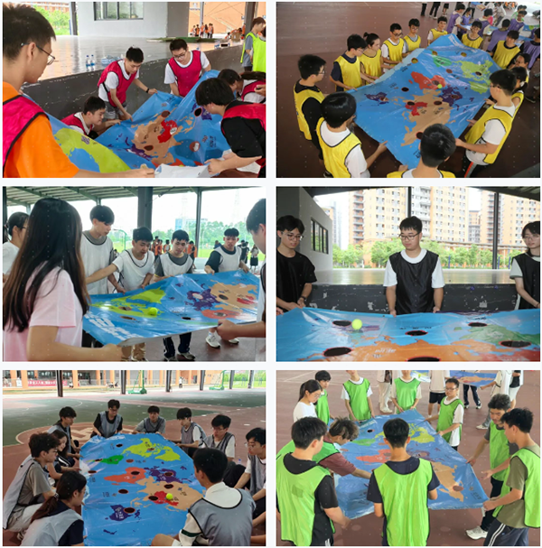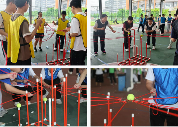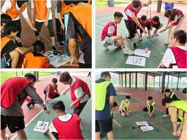 拓展活动以游戏形式进行,精心策划了“团队能量圈”“世界球”“团队金字塔”“神笔马良”四大游戏环节。比赛中,同学们热情似火,挥洒汗水,积极投身其中,现场气氛热烈非凡。大家心往一处聚,劲往一处使,默契配合,共同攻克难关,充分展现了全体成员强大的凝聚力与战斗力。