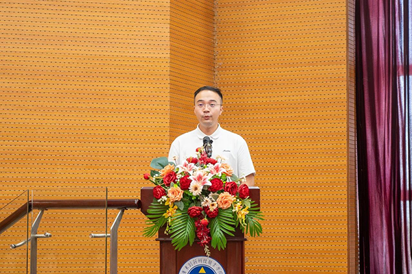 2023级网络专业的江海潮作为优秀学生代表发表感言。他以“感恩、成长、传承、展望” 四个关键词为脉络,深切表达对企业资助与学院培育的感恩之情,并郑重承诺将把这份荣誉转化为奋进动力,立志成为引领技术革新、服务社会发展的复合型ICT人才。
