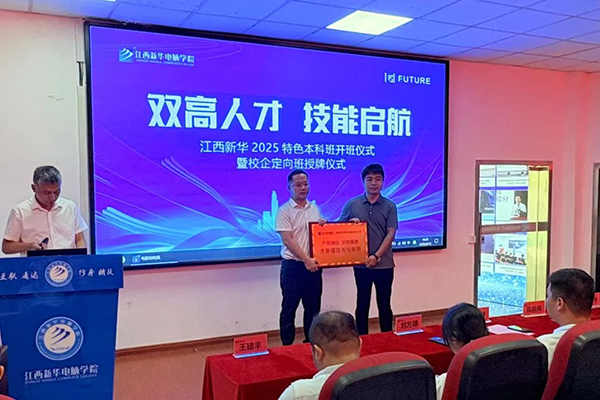 仪式上,江西新华电脑学院副校长邹时桥和校企合作主任祝继华分别发言。邹校强调,鸿蒙订单班的成立是学校深化产教融合、服务区域数字经济的重要举措。他表示,此次与讯方技术合作开设订单班,可有效促进将最新的技术标准、项目案例和岗位需求融入教学环节;学校将整合优质资源,致力于培养更多契合鸿蒙生态需求的优秀人才。