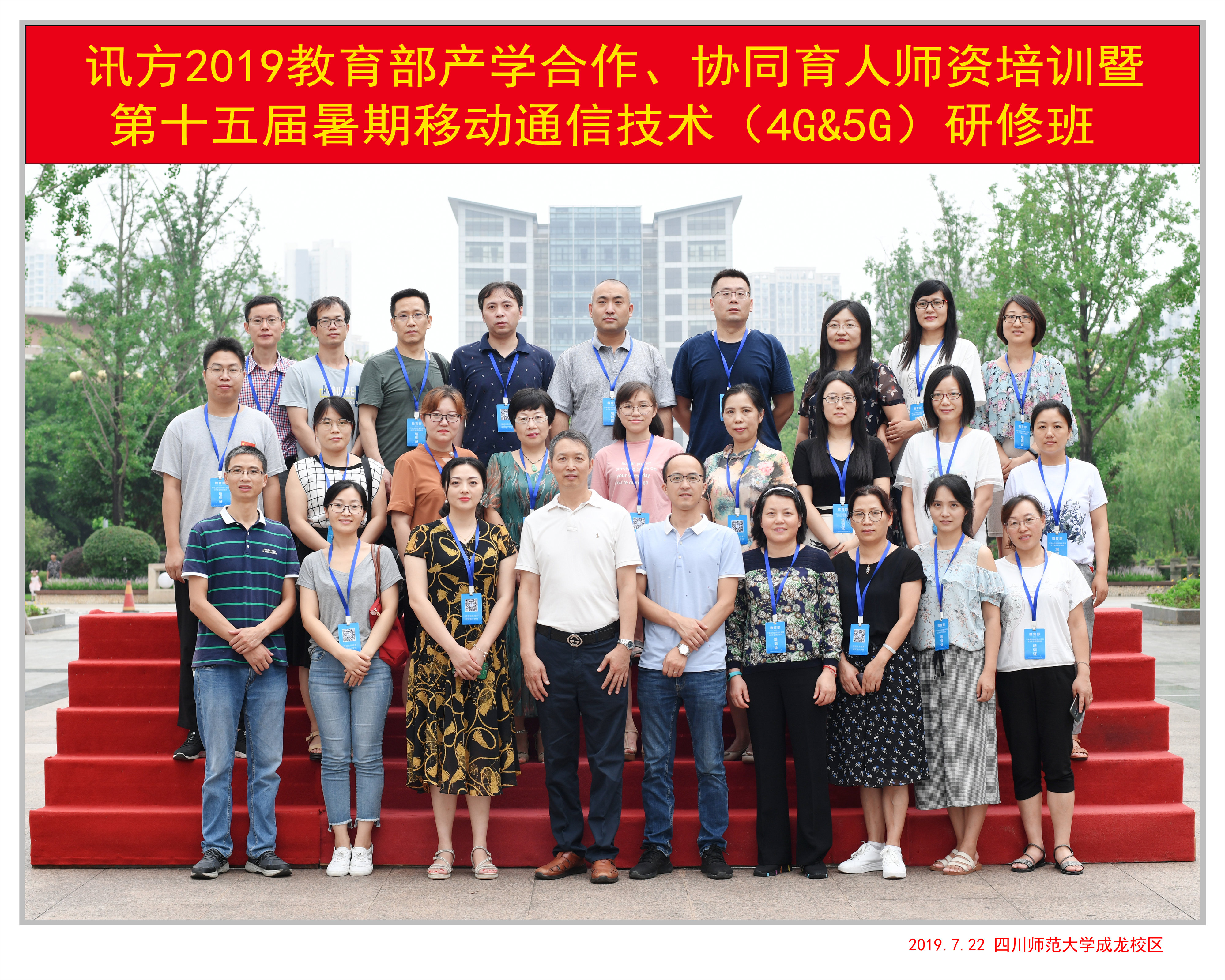 2019年7月22日,“讯方2019教育部产学合作、协同育人师资培训暨第十五届暑期移动通信技术(4G&5G)研修班”在四川师范大学成龙校区正式开班。四川师范大学物理与电子工程学院副院长李旭、讯方公司四川区域总监张云、讯方公司高级讲师周君茹及来自全国各院校26位教师参加开班仪式。