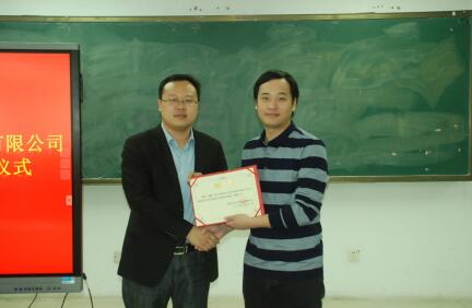 本次会议高潮到来,讯方公司何总与学院王院长分别给双方导师发放聘书: