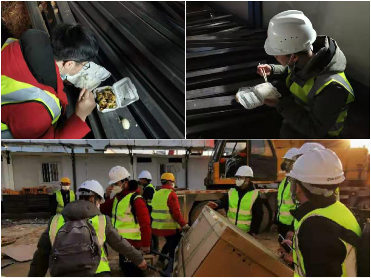 1月27日,火神山第一批物料进场,讯方人与合作企业搬运搭建。