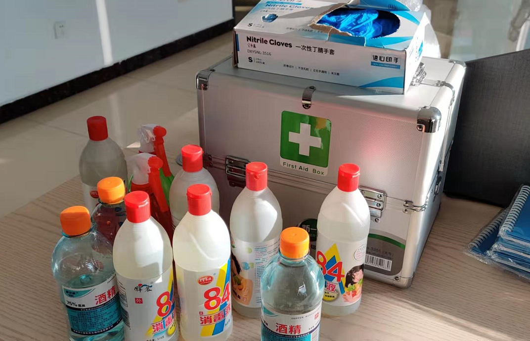 提前做好上班期间疫情防控应对方案和复工前疫情防控工作,办公室配置了应急药箱、酒精、84消毒液、一次性手套等消杀用品。