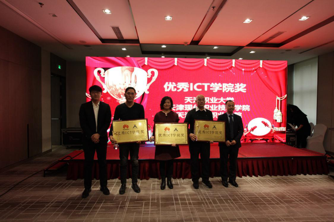 分享结束后,由华为公司杨骏超先生与讯方公司姚勇副总裁共同为天津职业大学、天津现代职业技术学院、天津工业职业学院颁发“优秀ICT学院奖”。 紧密的校企合作关系助力三所高校学生更清晰地了解到行业前沿知识,掌握行业实用技能,大大提升了就业竞争力。更是极大地提高了高校的专业建设水平,形成了极具特色的品牌高校,促进校园招生和学生就业,真正实现了进出口双向通畅。