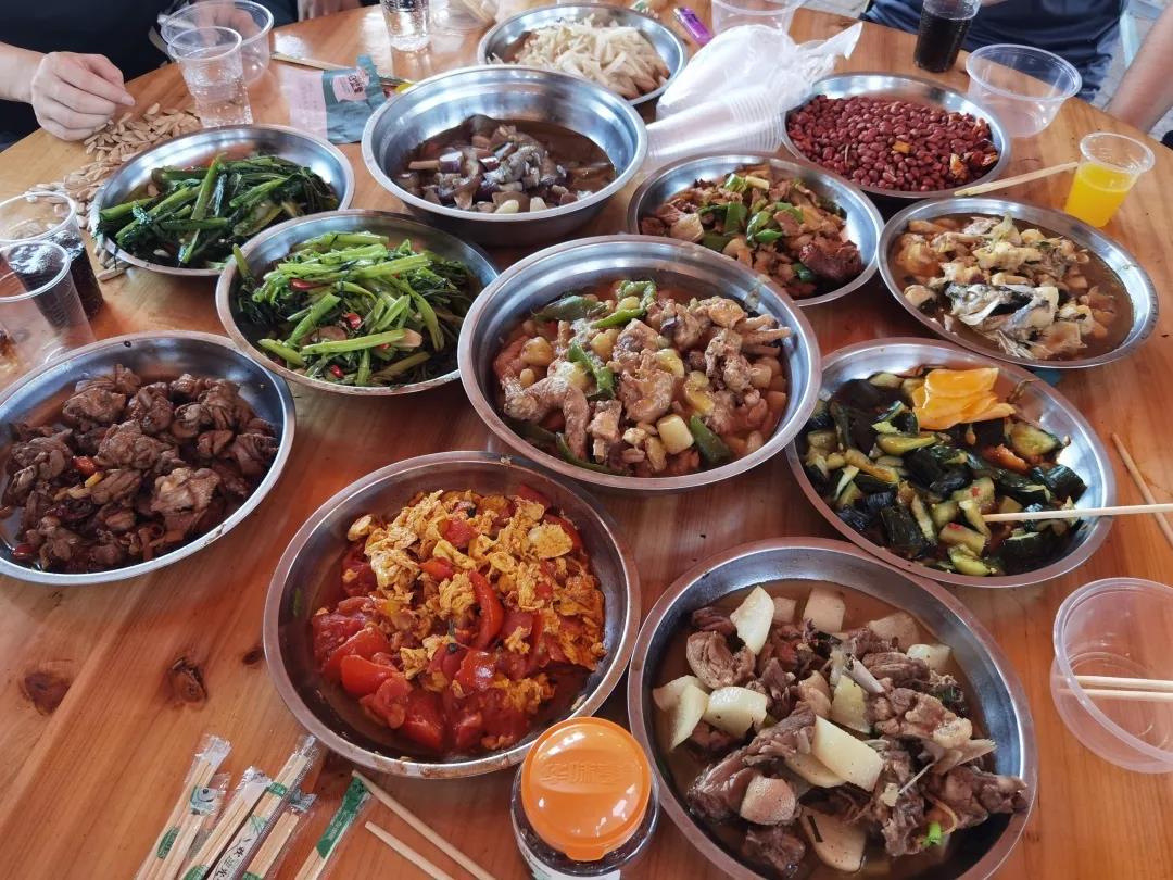 一上午的团建结束了,大家来到野炊区食材库领取了自己的食材,并迅速找到自己对应编号的“农家柴火炉灶”开始生活做饭。大家分工协作,有负责洗菜,有负责切菜,还有负责炒菜的大厨,忙忙碌碌,好不热闹!