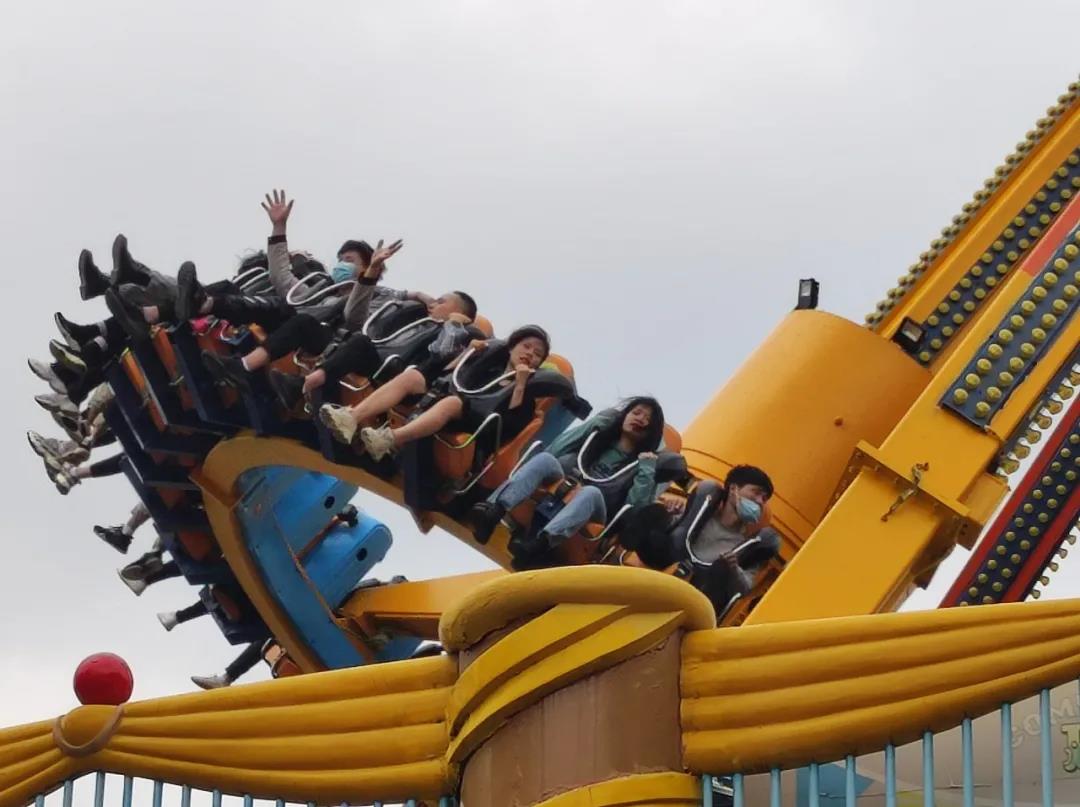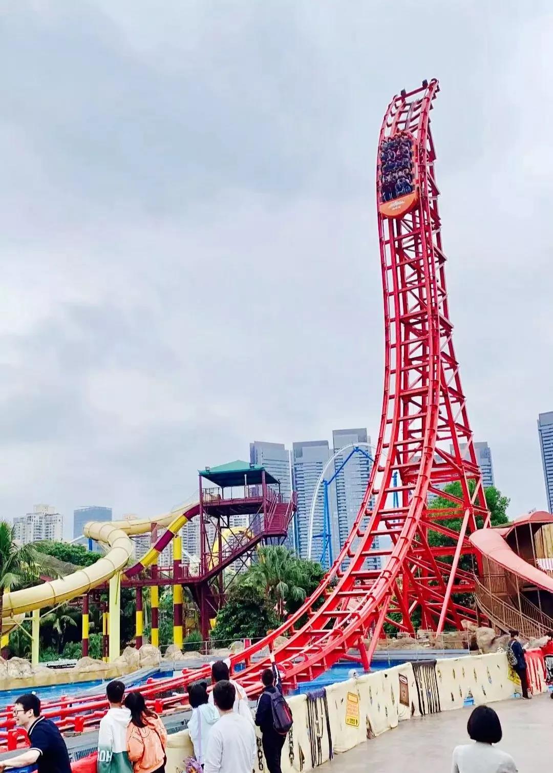 即使如此,也浇灭不了小伙伴们的热情,毕竟“惊涛骇浪”、“完美风暴”、“环翼飞车”、“大摆锤”、“矿山车”、“激流勇进”还在等着大家呢~