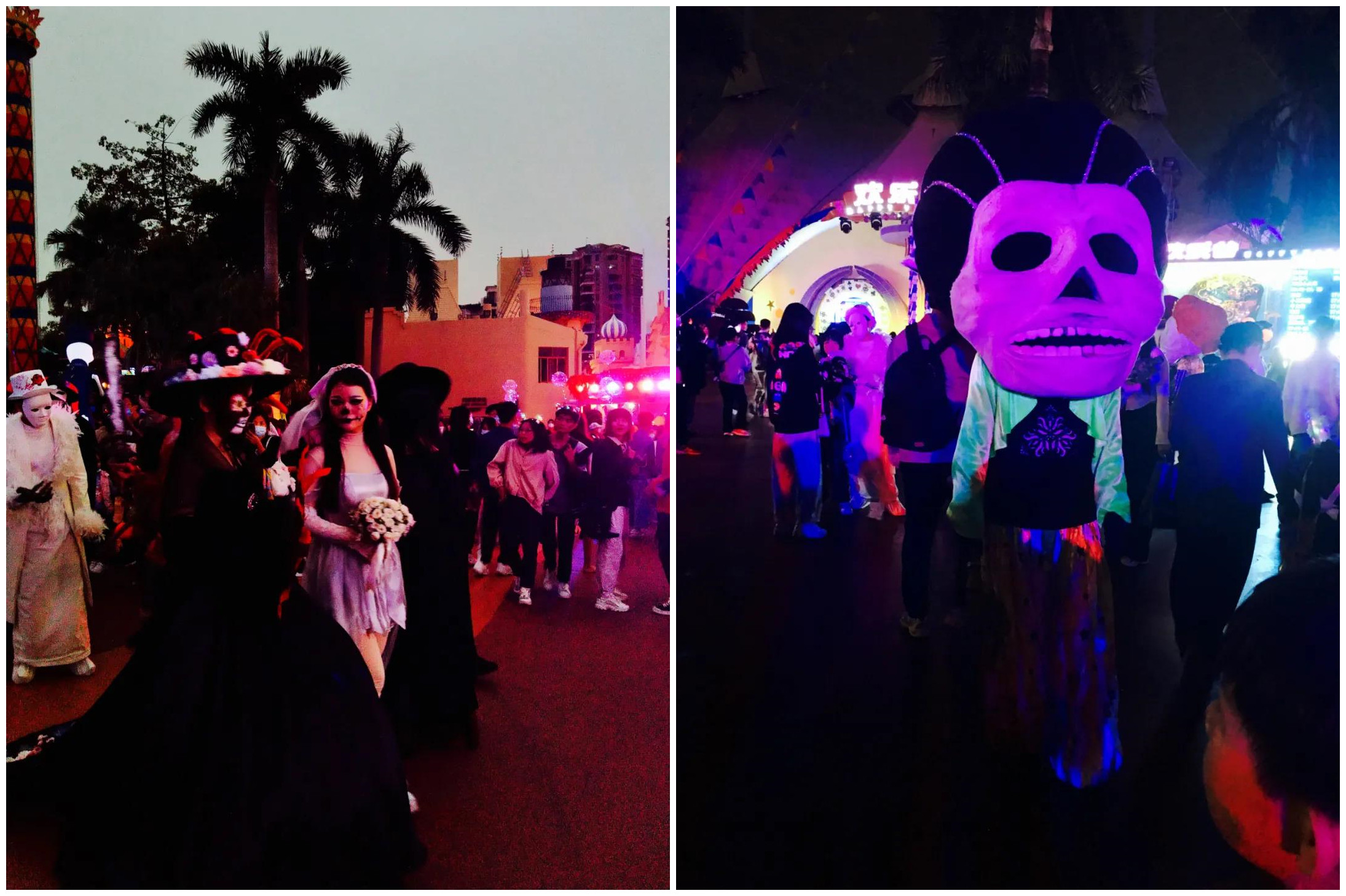 当夜幕降临撞上欢乐谷的万圣节,你猜会碰到什么呢?别眨眼,一大波“猛鬼”即将抵达!各类鬼屋、NPC相继登场。走着走着,稍不留神就和“鬼新娘”撞个满怀,这酸爽,刺激着你的小心脏,还不赶紧跑!
