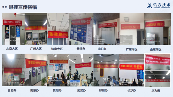 质量是企业的生命,是形象的内涵。质量安全来自于预防,而不是事后检验,员工必须时刻把质量装在心中。为此,讯方技术长沙办、华为云事业部通过组织活动月签名墙、百日誓师、质量安全知识问答等活动,时刻提醒员工视质量安全为自己的眼睛,注重规范操作。