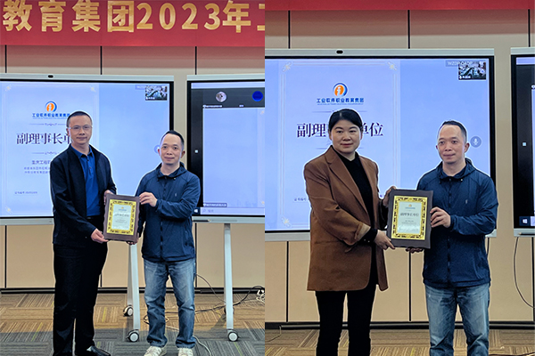 在线上线下成员单位的见证下,职教集团理事长单位代表向安徽工商职业学院、江西应用技术职业学院、重庆工程职业技术学院等到场成员单位代表授牌。