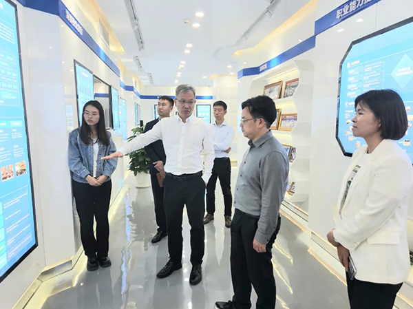 来访嘉宾一行首先参访了讯方展示中心,在刘国锋总裁的讲解下,周俊华校长一行对讯方技术的发展历程、业务模块、经营理念、合作成果有了深入了解,对讯方技术在人才培养、校企合作等领域的创新与取得的成果表示认可与赞赏。随后,双方围绕专业共建合作等事项展开详细交流。