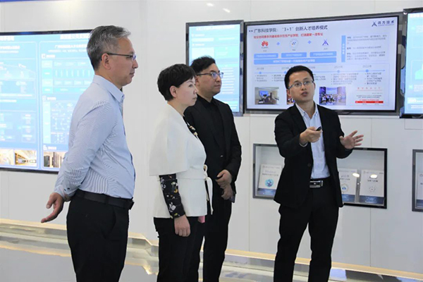 来访嘉宾一行首先参观了讯方展厅,在产品与解决方案中心总监邱韶杰的讲解下,对讯方技术的发展历程、产教融合业务、经营理念、合作成果进行深入了解,对讯方技术人才培养“三循环”生态模式、深度参与高校专业体系建设、科技创新人才培养等表示赞同。随后,双方围绕“郑州西亚斯学院·华为公司·讯方技术”三方深化校企合作等事项展开详细交流。
