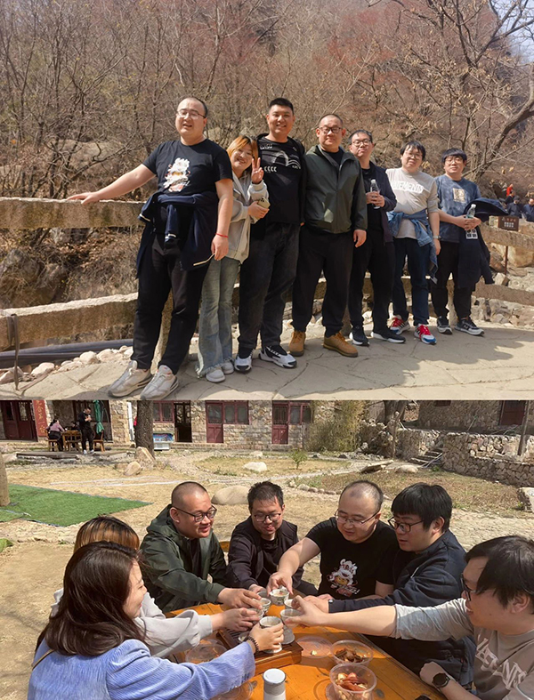 4月9日,开始了本次团建的重点项目“爬山-梨木台”,不仅锻炼了身体,还体现了讯方天津办员工“坚持”的本心,爬山时的相互鼓励也增进了团队精神。大家根据的个人意愿,分成三队出发,欢声笑语里有的人吃茶闲谈,体验沐浴山林春风之中的恬静;有的人冲顶登台,一览登高望远的广阔无垠;更有甚者连爬两座山,感受山里与世隔绝的温柔风景。