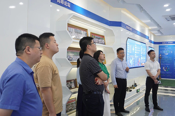来访领导在产品与解决方案经理辛保华的带领下参观了讯方技术展厅,深入了解了讯方技术发展历程、业务模块、经营理念等内容,并对讯方技术人才培养“三循环”生态模式、引入职业认证、搭建线上+线上就业平台、深度参与高校人才培养等表示高度认可。