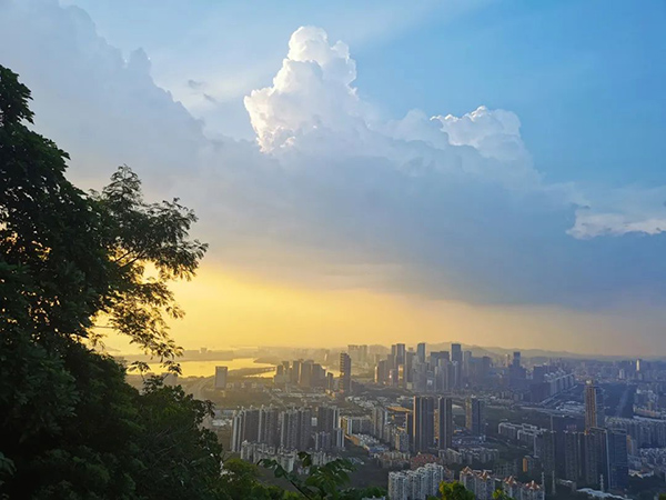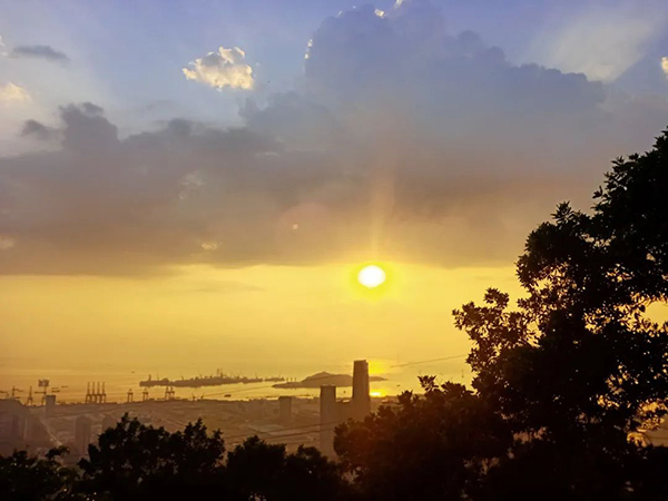 果真,到达山顶后,大家惊喜地发现除了蓝天白云,还有绝美的日落,来得早真的不如来得巧。
