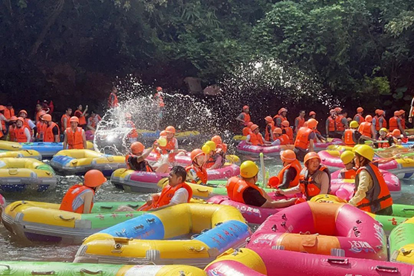 时而随波激流飘荡,惊险刺激,时而凭静水悠然,静享峡谷自然风光。坐在皮艇上体验漂流带来的刺激,河水清澈凉爽,扑打在身上实在舒服。