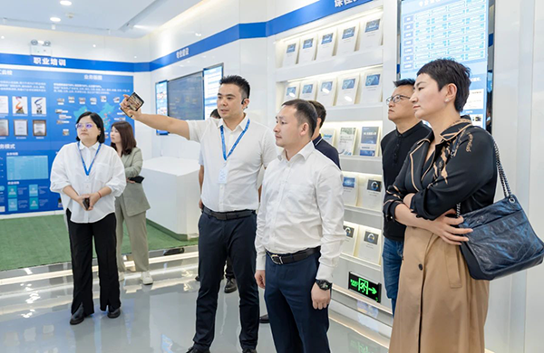来访领导参观了讯方技术展厅,深入了解讯方技术发展历程、业务模块、经营理念等内容,并对讯方技术人才培养“三循环”生态模式、深度参与高校课程改革、引入职业认证等举措表示高度认可。
