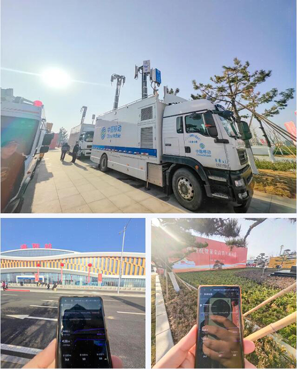 为提升会场现场的直播效果及在场用户体验,讯方技术烟台移动项目组对现有基站容量进行了扩充,此次活动在现场开通1辆应急通信车,安装了2台微站,1台4.9GRRU,4G&5G共计扩容小区24个;活动周边道路共计扩容8个。前后台同事始终保持联系以同步优化测试效果,优化过程中发现邻区有部分缺失,后台负责人员立即进行了补充,此外还针对现场情况对切换门限进行了优化调整,对于多载波小区及时采取负载均衡措施保障现场业务感知。